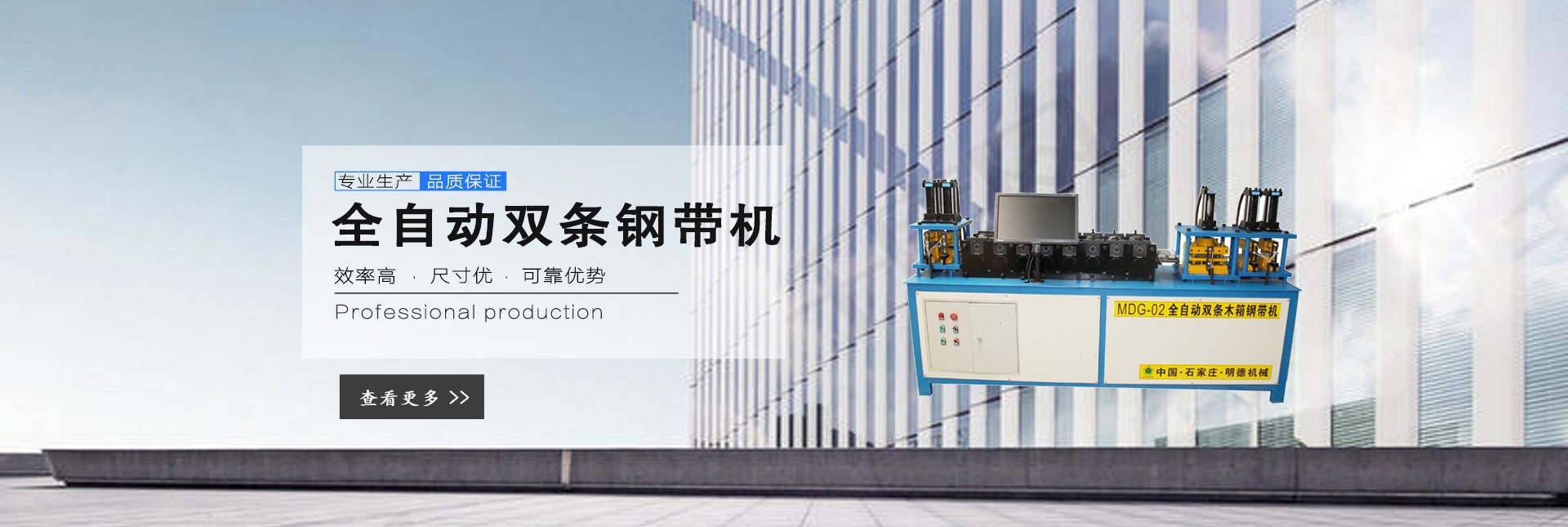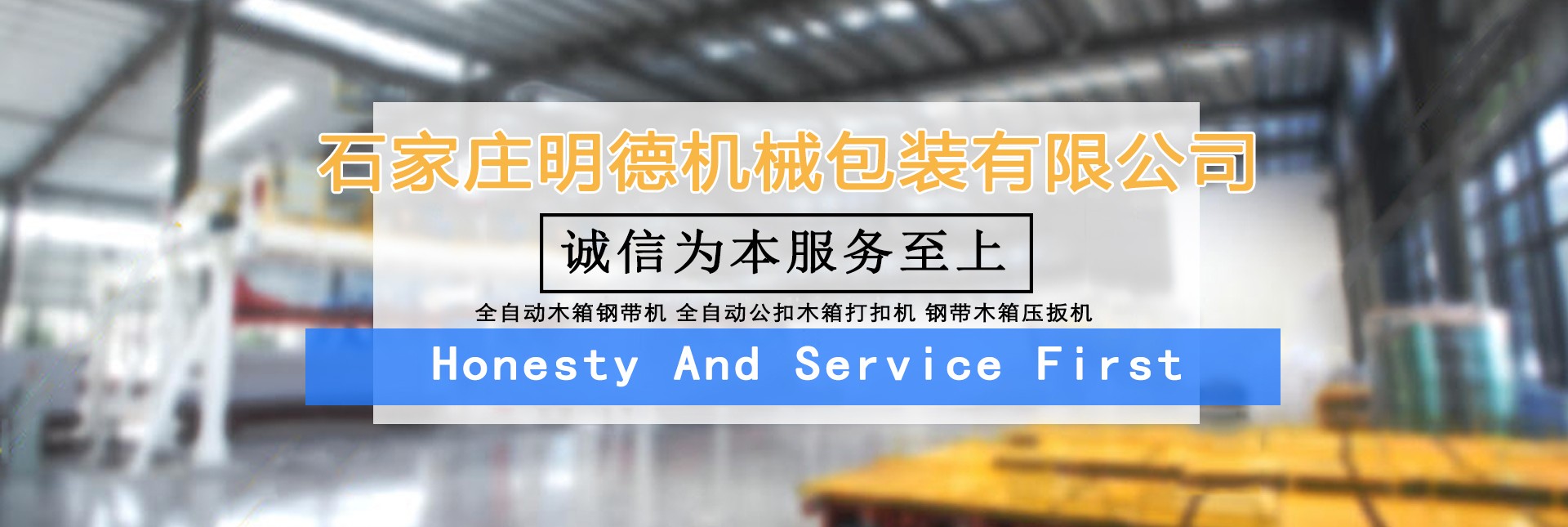 石家莊明德包裝機(jī)械有限公司是國(guó)內(nèi)專業(yè)生產(chǎn)木全自動(dòng)木箱鋼帶機(jī)、半自動(dòng)公母扣木箱打扣機(jī)、全自動(dòng)雙排孔定長(zhǎng)切斷機(jī)、美式托盤打釘機(jī)械、托盤刨槽機(jī)、倒角機(jī)、木包裝箱、木托盤的生產(chǎn)廠家。